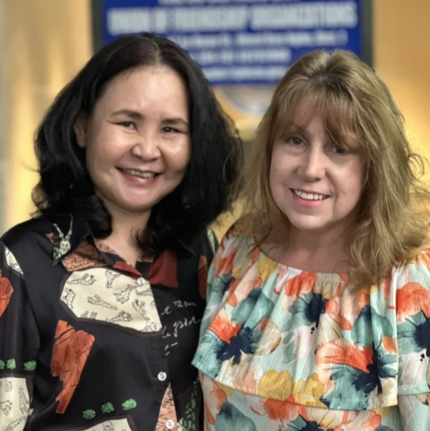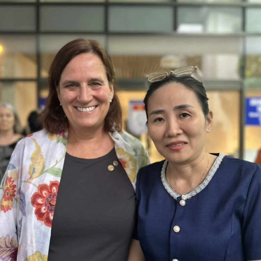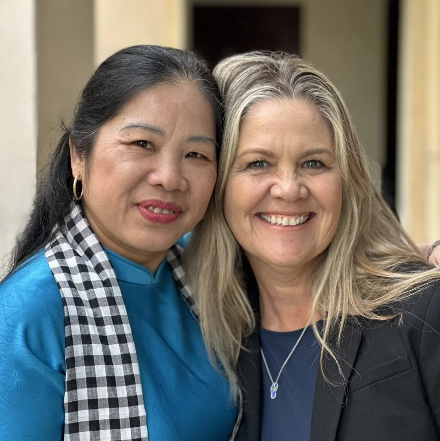 Kim Carlson Benner and Le Thi Dieu Linh. Kim's father was shot down in Ben Cat in December 1966. Ms. Linh’s uncle was also killed in Ben Cat, and he too remains missing.